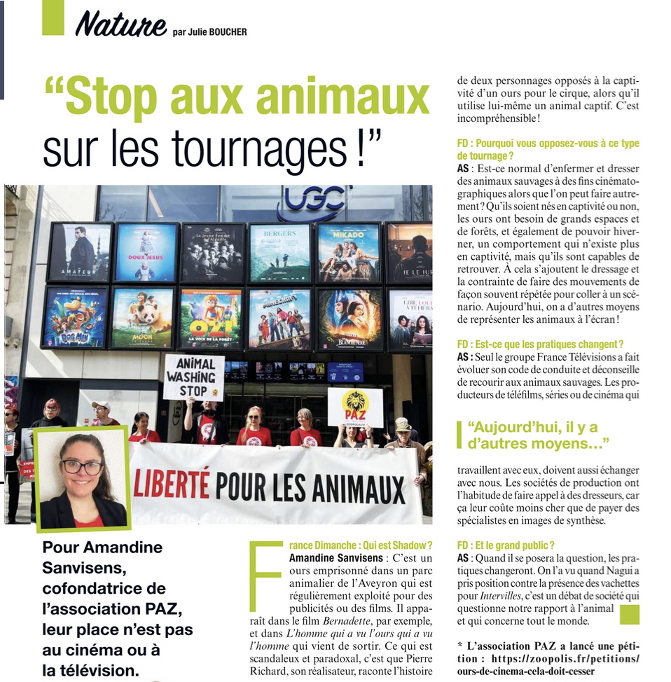 17/11/2025 – La Dépêche / L’association PAZ dénonce l’utilisation d’animaux sauvages dans le film « Animal Totem » et appelle à des alternatives