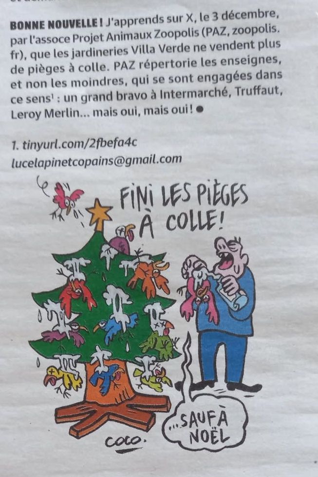 20/12/2025 – Dernières Nouvelles d’Alsace / Après une pétition dénonçant la vente des pièges à colle, la jardinerie les retire de ses rayons