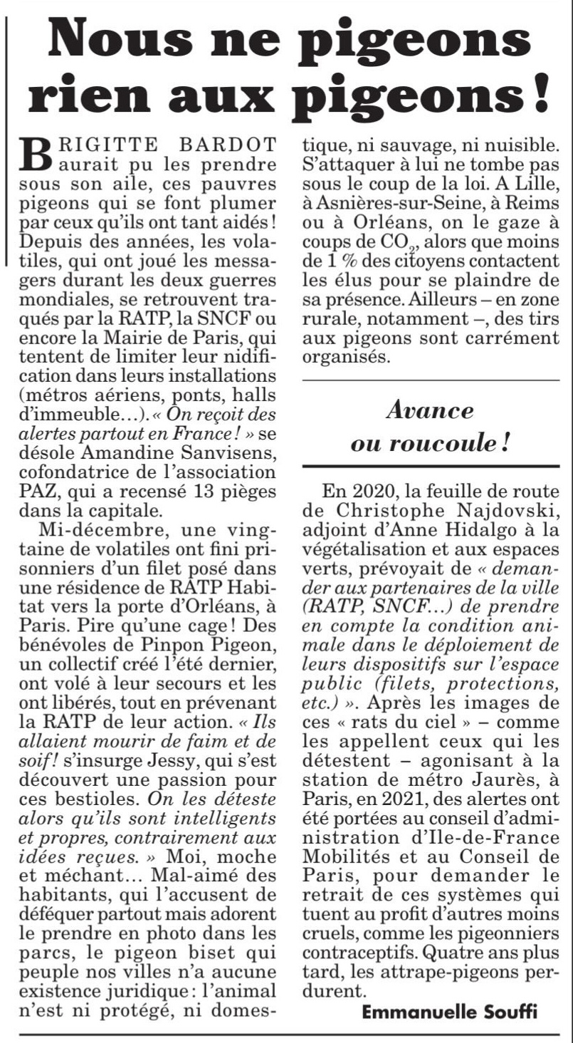 07/01/2026 – Le Canard Enchaîné / Nous ne pigeons rien aux pigeons !